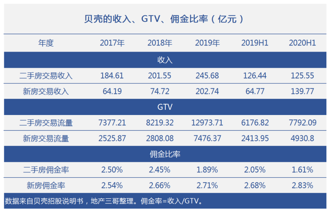 3、貝殼平臺上,新房的GTV和抽傭快速逼近和超越二手房:新房的傭金率增長,二手房傭金率下降。