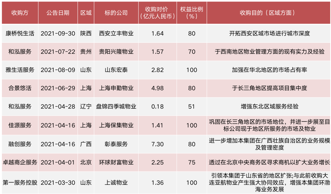 當前,行業的市場格局仍較為分散且競爭較大,擴規模、提高市場占有率,仍是物企重要的訴求之一。其中,收并購是企業快速提高管理規模的重要方式。