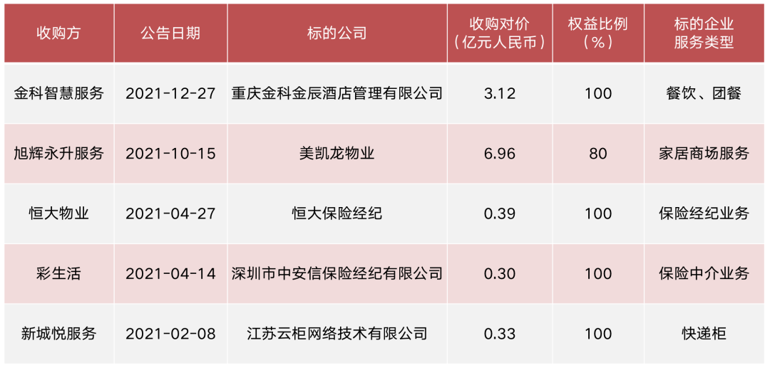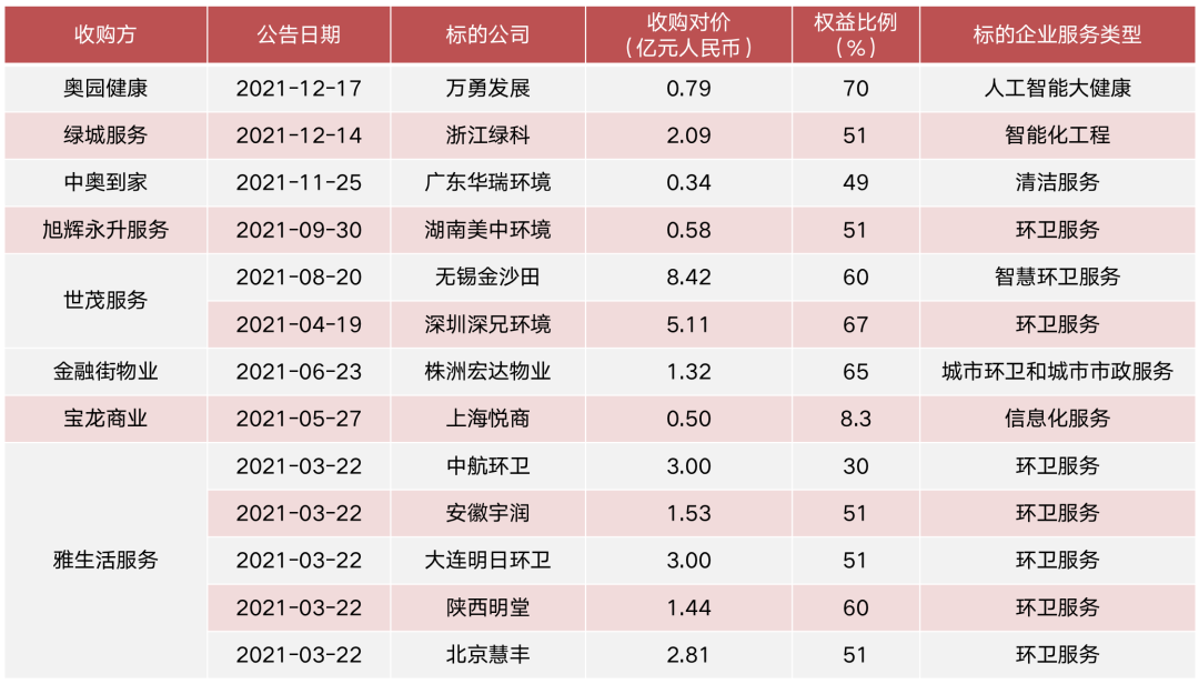 圖:2021年以來上市物企在增值服務領域收并購事項一覽