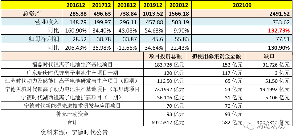 3、此次定增擬投項(xiàng)目的資金仍有110.53億元的缺口,寧德時代計劃擬通過自有資金、經(jīng)營積累和銀行借款等方式給予解決。