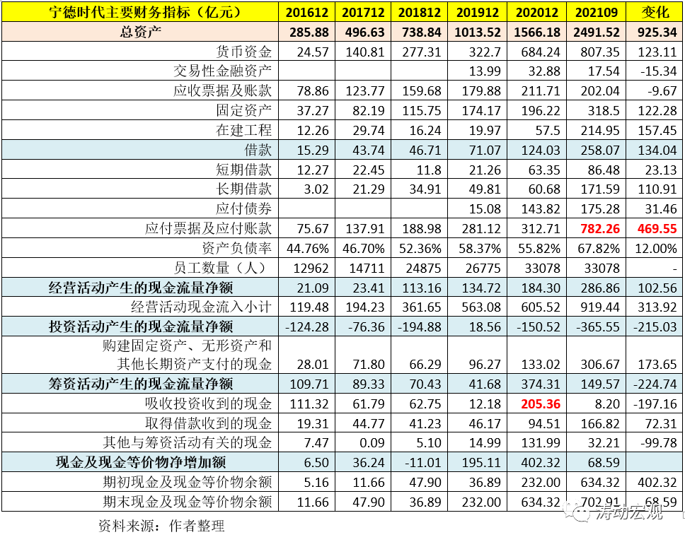 (1)寧德時代有很大一塊債務(wù)體現(xiàn)在無息債務(wù)上,即以應(yīng)付票據(jù)及應(yīng)付賬款為代表的營運(yùn)資金,今年9月底應(yīng)付票據(jù)及應(yīng)付賬款余額達(dá)到782.26億元,較2020年底大幅增加469.55億元,增幅較大,可以被視為值得關(guān)注的異常項(xiàng),表明寧德時代的營運(yùn)資金需求較高。