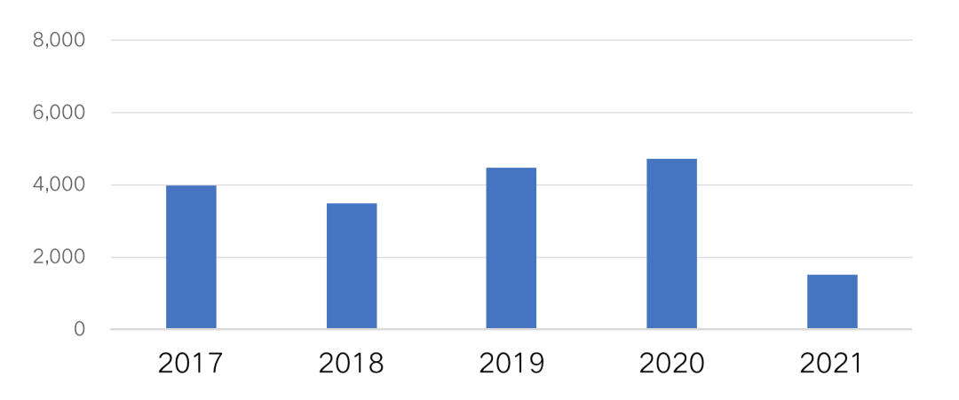 圖:2017-2021年7月房企拿地投資規模(億元)