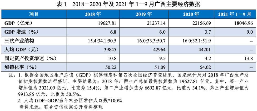 廣西壯族自治區(qū)(以下簡(jiǎn)稱“廣西”)地處中國(guó)西南部,經(jīng)濟(jì)總量處于全國(guó)中下游水平,人均GDP排名靠后。2020年,受新冠肺炎疫情影響,廣西經(jīng)濟(jì)增速及固定資產(chǎn)投資增速均明顯放緩。2021年前三季度,廣西經(jīng)濟(jì)增速及固定資產(chǎn)投資增速均同比大幅增長(zhǎng)。