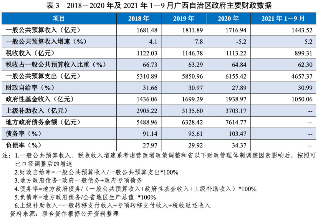 2.廣西自治區(qū)政府財(cái)政實(shí)力及債務(wù)情況