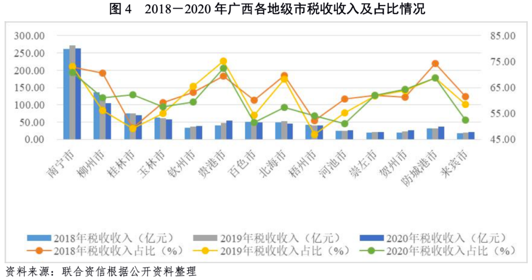 3.廣西各地級(jí)市財(cái)政收入對(duì)發(fā)債城投企業(yè)債務(wù)的支持保障能力