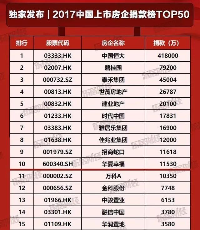 近日發布了《2017中國上市房企捐款榜TOP50》,榜單上的排名和捐款額饒有趣味,勾起了內幕君對房企慈善行為的好奇。