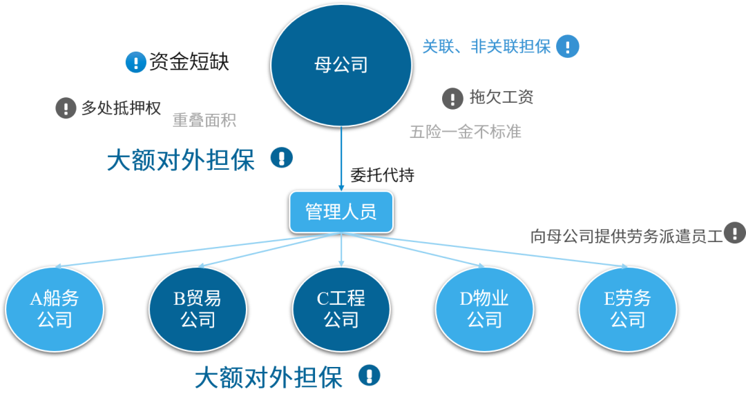 (5)目標公司對外擔保數額巨大,且 B 貿易公司、C 工程公司也有大額對外擔保。