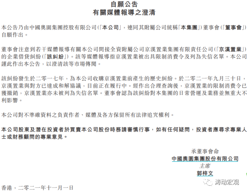今年10月底,市場(chǎng)傳言?shī)W園系子公司京漢置業(yè)因借貸糾紛成為失信執(zhí)行人,引發(fā)中國(guó)奧園股債雙殺。雖然2021年11月1日,中國(guó)奧園發(fā)布公告澄清,但市場(chǎng)對(duì)奧園系的流動(dòng)性擔(dān)憂依然存在。不過(guò)近期奧園正在謀劃出售京漢置業(yè)事宜。