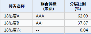 其二,完全不出表,這種情況比較常見。實踐中,ABS往往設定“優先/次級結構”、“原始權益人差額補足”、“母公司/關聯方擔保”等增信條款,在這些增信下,往往是不出表或者部分出表。如果是全額差額補足、或者自己持有的次級占整個ABS規模的一定比例(實際操作中一般以10%為限)以上,則完全不能出表,如果低于這個比例,則可按繼續涉入的原則做到部分出表。以兆泰集團發行的悠唐中心CMBS為例(分層情況見表1),雖然次級只有0.04%的份額,但因為原始權益人兆泰集團對ABS提供差補承諾,則此基礎資產也無法出表。那么,發行ABS后,其資產負債表將體現為貨幣資金增加,其它非流動負債、其它流動負債或一年內到期的非流動負債增加(相當于一種存在抵質押的債權融資)。
