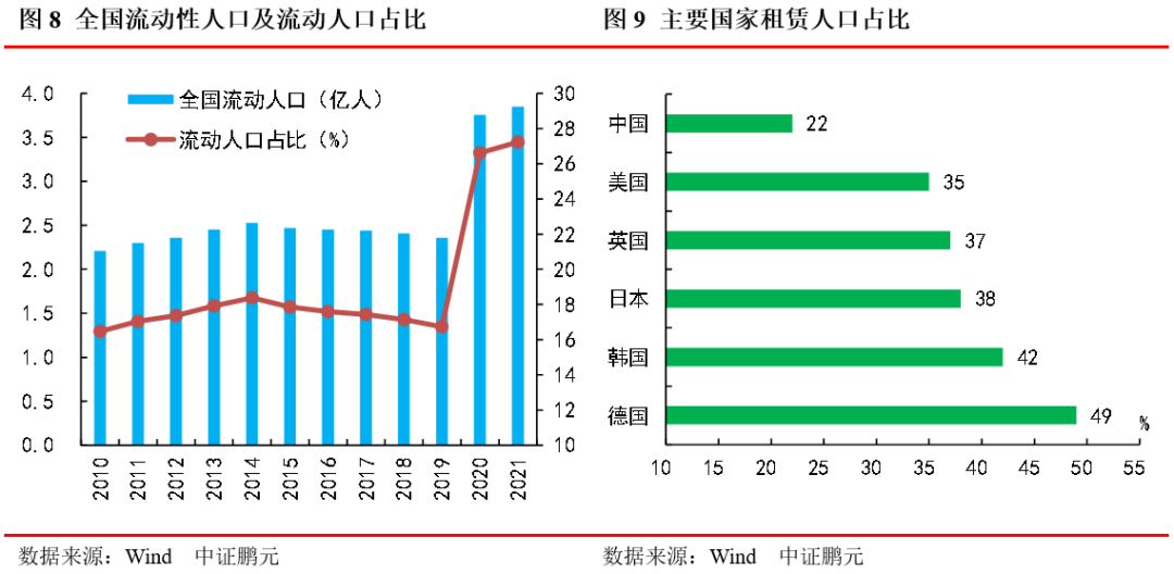中國目前租賃人口占比僅為22%左右,低于發(fā)達(dá)國家,美國租賃人口占比約為35%,德國租賃人口占比接近50%。