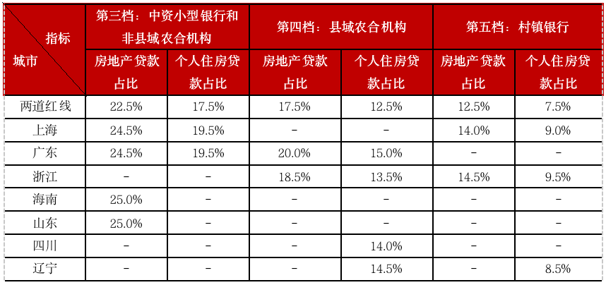表:部分省市上調中小銀行房貸占比上限