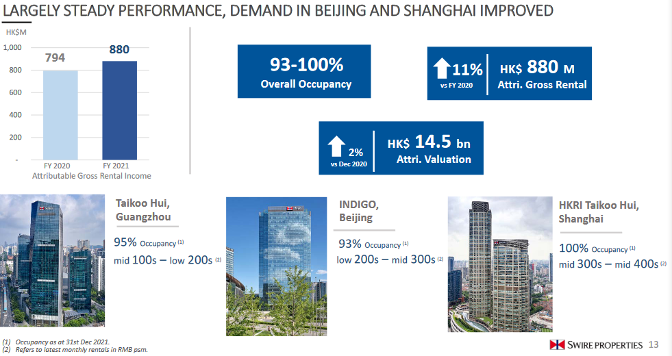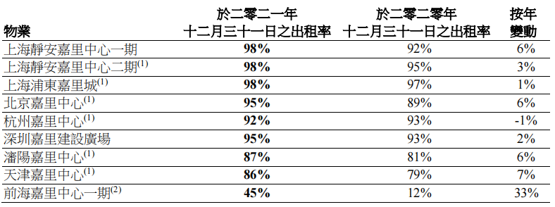 新落成的辦公樓亦有望延續平穩的出租步伐至2022年,從而帶動整體租出率,為辦公樓組合帶來更可觀的收入。