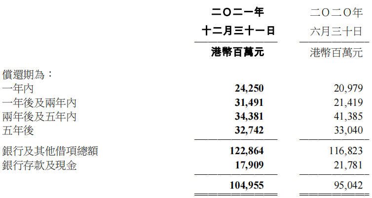 財務狀況方面,截至2021年12月31日,集團負債凈額132億港幣,同比下滑48%;負債凈額與總權益比率下降至7.9%。