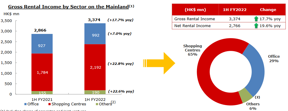 內地租賃收入:20.97億港幣(+15%)