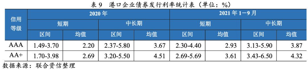 2020年二季度以來(lái),市場(chǎng)流動(dòng)性邊際趨緊,港口企業(yè)短期發(fā)行利率整體呈波動(dòng)上升趨勢(shì),長(zhǎng)期發(fā)行利率較為平穩(wěn)。