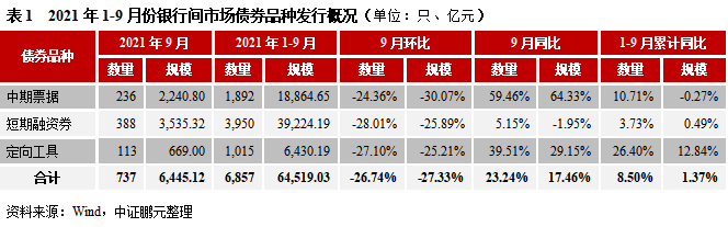 9月銀行間市場發行規模環比下降,中票短融發行成本上升