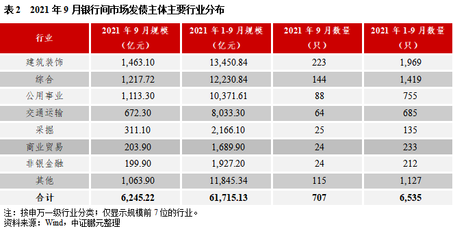 四、9月建筑裝飾業和綜合業是銀行間市場債券發行的主力行業
