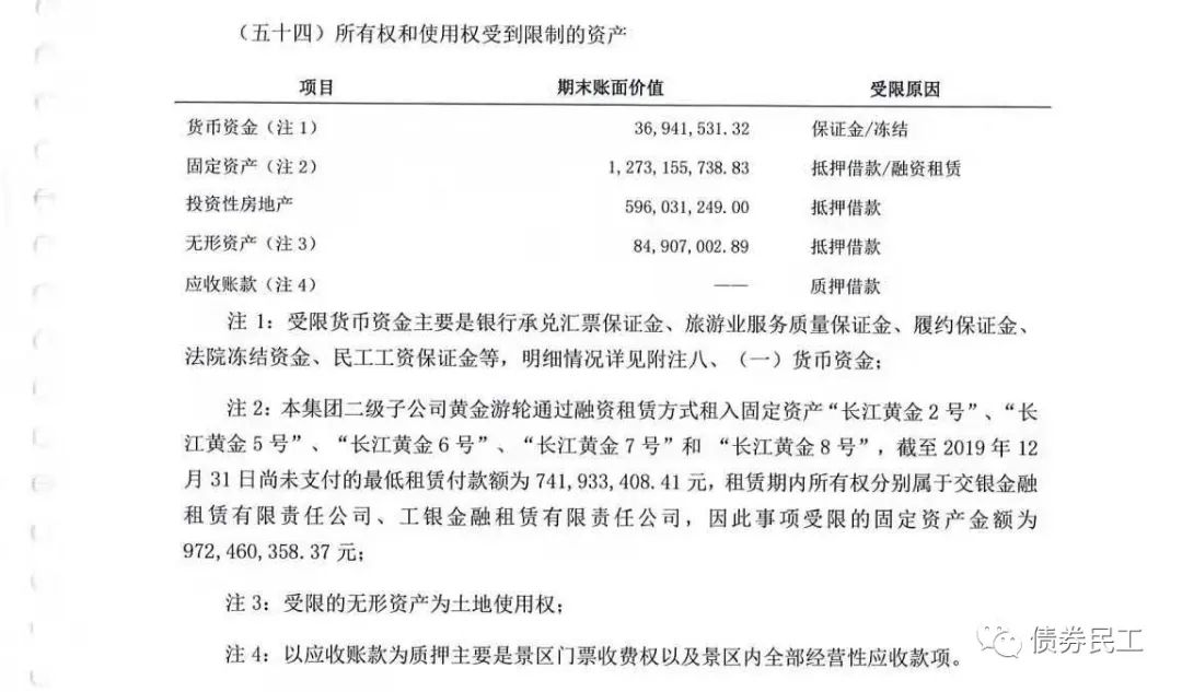 1、由于“20重慶旅投GN001”為PPN,發行材料不公開。債券民工從公開渠道找到了重慶旅投2019年度第二期短期融資券募集說明書作為參考,其中募集說明書對于受限資產部分的描述很簡單,按照會計科目對受限資產的內容進行了簡要介紹。