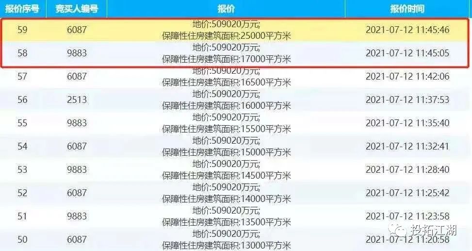 土地拍賣進行的前一個小時,大家都在按規(guī)則競價,一直競價到509020萬元。然后大家又花了一個小時競無償移交保障性住房,可能是萬科覺得這樣一直搞沒意思,想早點結(jié)束。在上午11時45分的時候,萬科突然加價,跳加了8000平米的無償移交,直接把無償移交保障性住房的面積,干到了25000平米,然后土拍結(jié)束了。