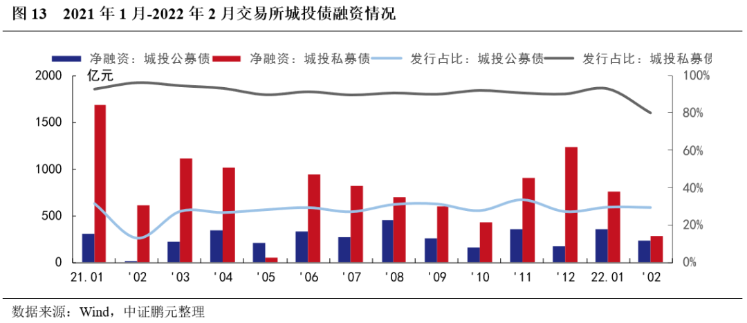 1. 2月份交易所城投債占比下降,私募債城投凈融資規模下降