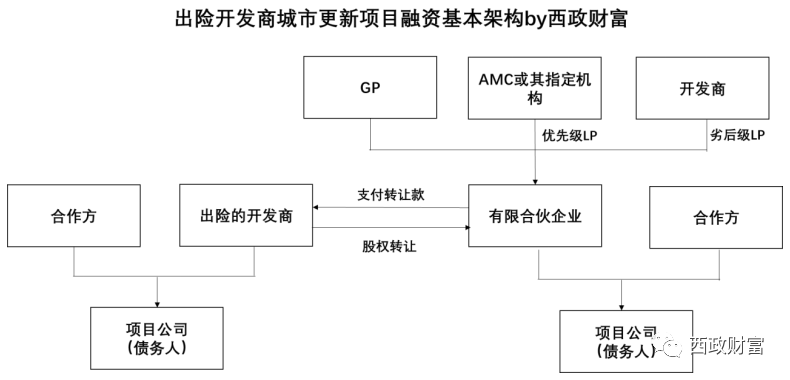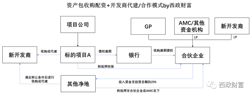 1. 由于AMC并無開發能力,但是基于目前民營開發商普遍的信用風險問題,提出希望引入國央企開發商作為收購方或代建方,由AMC或組建的合伙企業作為資金紓困主體,負責資產收購的配資;