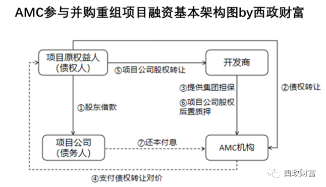 1. AMC機構收購項目原權益人對項目公司的股東借款或其上游供應商對項目公司的應收未收工程款等債權,AMC支付債權轉讓價款,開發商(收購方)就項目公司的債務償還向AMC提供集團層面的保證擔保。