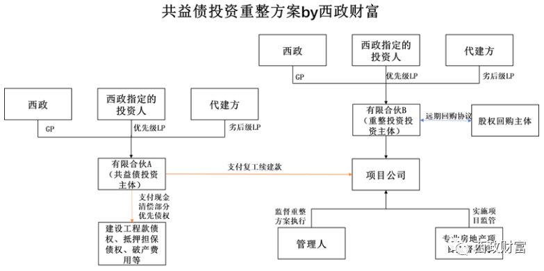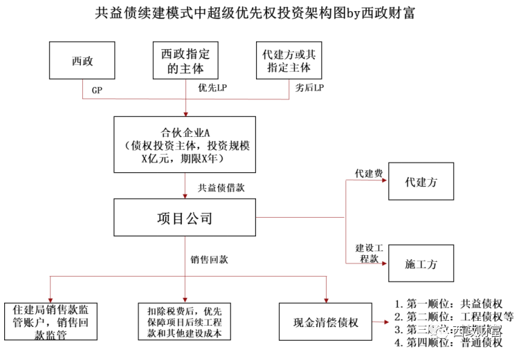 (1) 投資架構: 西政(GP)與其指定的主體(優先級LP)及代建方或其指定的主體(劣后級LP)共同成立合伙企業A作為超級優先權投資主體,優先級LP和劣后級LP按7:3的比例出資,總出資額度不超過約定金額。