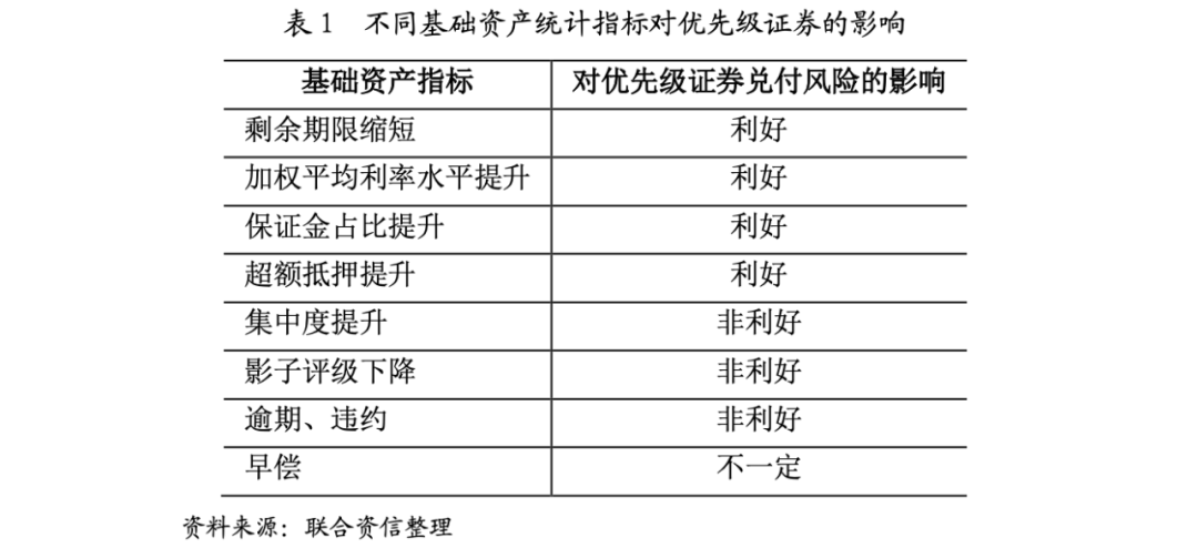 結合證券兌付情況和基礎資產表現情況,將基礎資產指標對優先級證券的影響總結如下表: