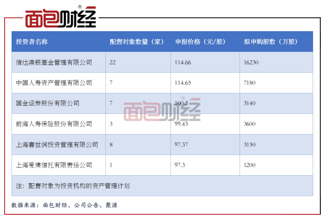 根據(jù)詢價明細(xì),將所有投資者報價和擬申購股數(shù)加權(quán)平均得出的申報價格均值為89.23元/股,而所有投資者報價的中位值為90.79元/股。易方達(dá)和主承銷商中信證券分別報出的97.1元/股和94元/股明顯較高。