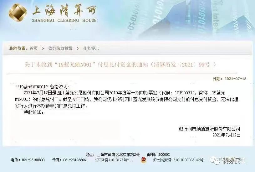 根據(jù)上海清算網(wǎng)2021年7月12日的公告,四川藍(lán)光發(fā)展股份有限公司(以下簡(jiǎn)稱“藍(lán)光發(fā)展”)發(fā)行的“19藍(lán)光MTN001”未能按時(shí)支付付息兌付資金,構(gòu)成了實(shí)質(zhì)性債券違約。這是繼泰禾集團(tuán)、華夏幸福違約之后的第三家千億房企發(fā)生債券實(shí)質(zhì)性違約。