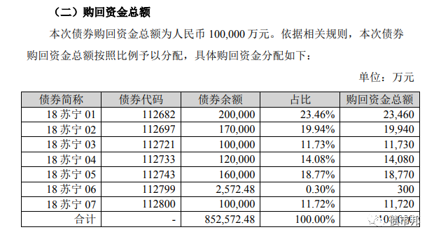 相關債券的回購價格,是11月12號大跌之后的收盤價+應計利息來確定的。以18蘇寧01為例,回購凈價僅為87.29元,也就是說,發行人借了100元的本金,現在只用還87.29元了。