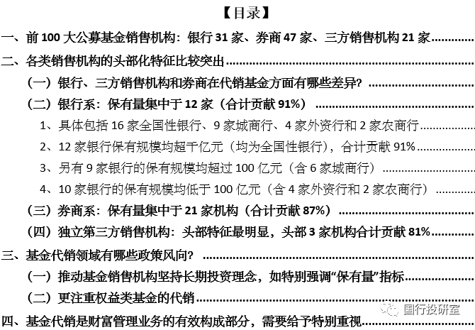 一、前100大公募基金銷售機構:銀行31家、券商47家、三方銷售機構21家
