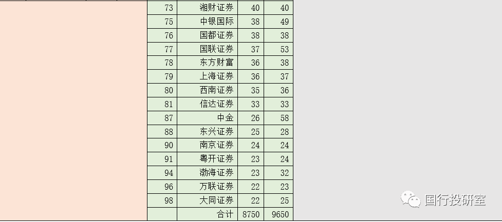(三)券商系:保有量集中于21家機構(合計貢獻87%)