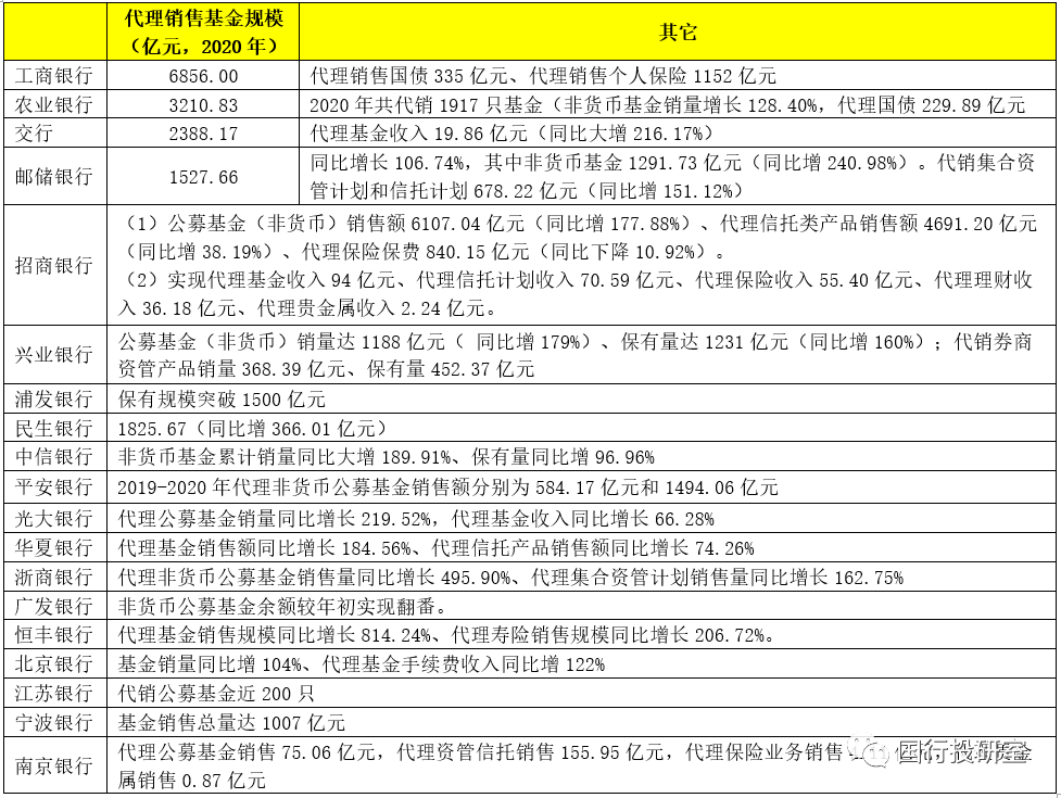 因此,某種程度上大力拓展基金代銷業務,是商業銀行大力發展財富管理業務的必要舉措,意味著客戶在一家銀行可以有更多更豐富的選擇,銀行亦可以借此進一步增強存量客戶粘性并拓展增量客戶,同時還可以帶來相對客觀的中收收入。在財富管理業務轉型比較明確的背景下,未來在基金等資管產品代銷方面,爭奪仍會激烈,頭部化趨勢也會越來越明顯。