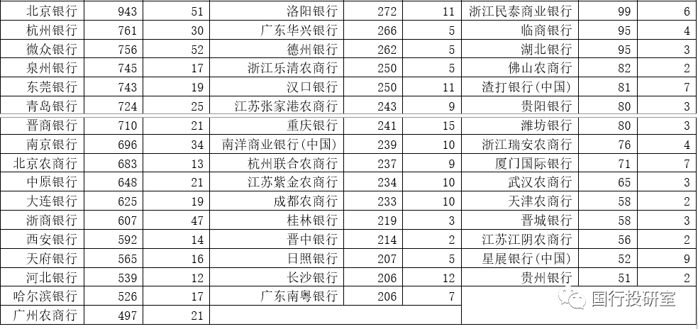 3、另有9家銀行的保有規模均超過100億元(含6家城商行)