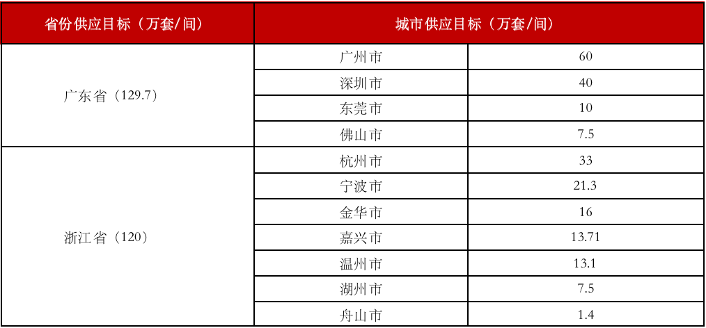 表:部分省市“十四五”時期新增保障性租賃住房供應目標(萬套/間)