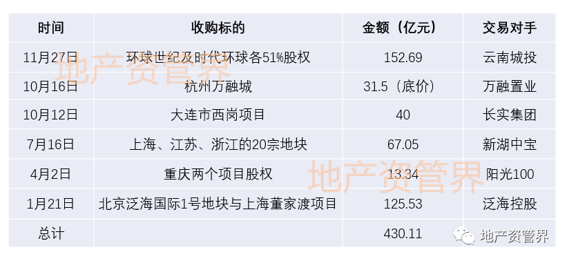 隨后交易對手不斷變化,從深陷財務(wù)危機的陽光100到新湖中寶,再到近兩個月的長實、萬融和云南城投,粗略算下來,孫宏斌今年又掏出了430億以上來“掃貨”。