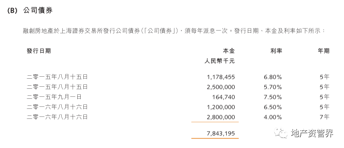 第二,是公司債券和非公開發(fā)行境內(nèi)公司債券。融創(chuàng)于上海證券交易所分別發(fā)行公司債券和非公開發(fā)行境內(nèi)公司債券,累計13筆資金,共計248.5億元人民幣。