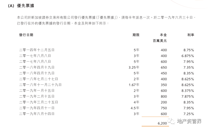 首先,是優(yōu)先票據(jù)。融創(chuàng)于新加坡證券交易所有限公司發(fā)行優(yōu)先票據(jù),截止2019年6月30日,已發(fā)行在外的優(yōu)先票據(jù)本金累計為62億美元。據(jù)一位新加坡債券從業(yè)人士表示,融創(chuàng)的美元債在市場上很搶手,“最近幾筆都是超發(fā),投資者基本要搶額度。而且,相比一些閩系房企,融創(chuàng)的發(fā)債利率算是低的。”
