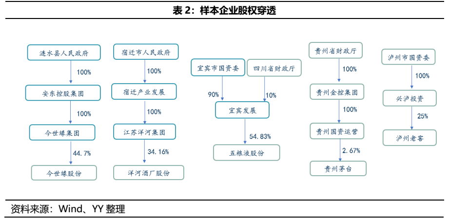首先,需要關(guān)注產(chǎn)投平臺對白酒企業(yè)的控制力,這關(guān)系到平臺對優(yōu)質(zhì)白酒資產(chǎn)的騰挪能力。樣本企業(yè)中,安東控股、宿遷產(chǎn)業(yè)和宜賓發(fā)展都是白酒企業(yè)的母公司,興瀘投資是瀘州老窖的二股東,貴州國資運營是小比例股權(quán)獲得茅臺股權(quán)的無償劃轉(zhuǎn)。