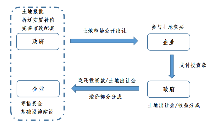 對于參與企業(yè)的前期投入資金,在地方政府獲取土地出讓金收入后,將會以合規(guī)的形式返還予參與企業(yè)