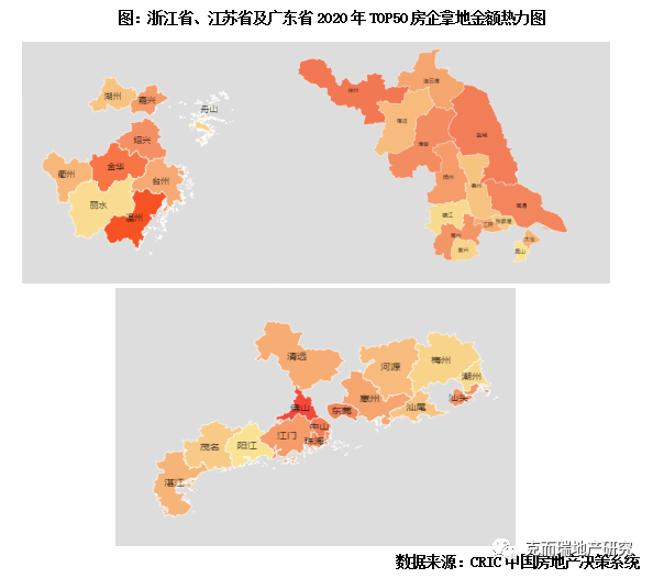 備注:顏色越深代表投資熱度越高,此圖僅監測TOP50房企投資省份(不含港澳臺三地)