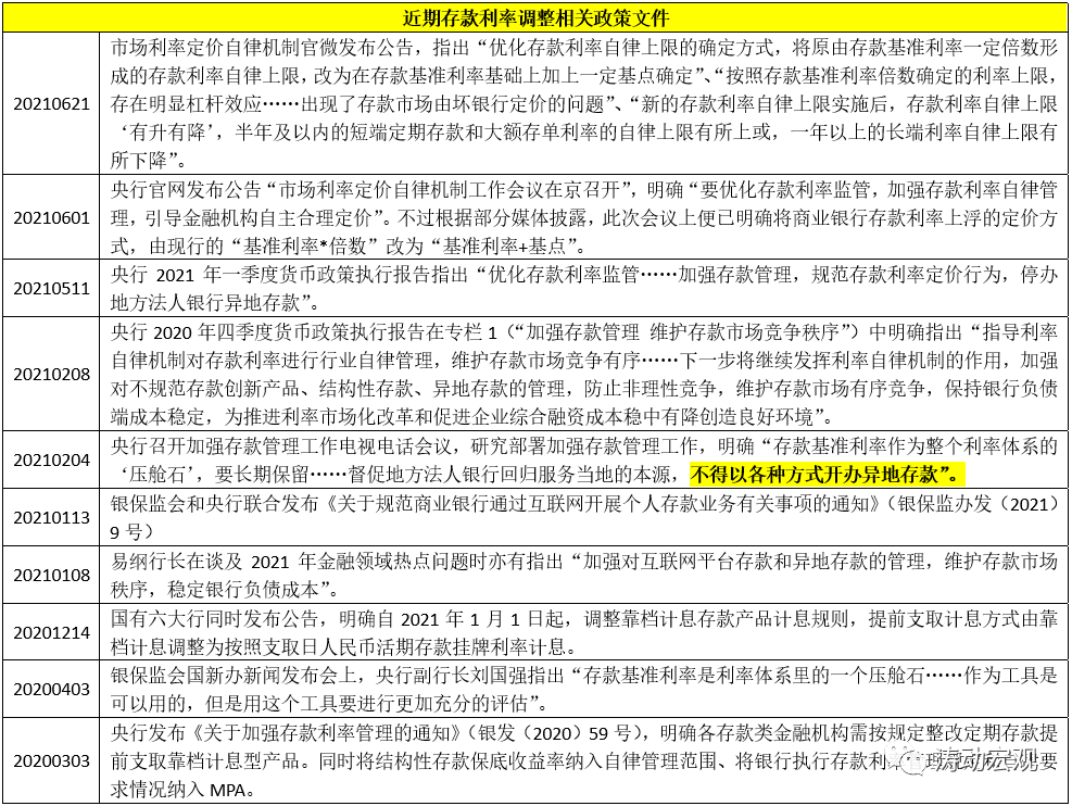 3、之前對(duì)結(jié)構(gòu)性存款、智能存款、異地存款以及對(duì)貨基與類(lèi)貨基(現(xiàn)金管理類(lèi)產(chǎn)品)的整頓,是存款利率報(bào)價(jià)方式調(diào)整的前奏,與存款利率報(bào)價(jià)方式調(diào)整在政策內(nèi)涵與導(dǎo)向上是一致的。這些高成本存款或類(lèi)存款被禁或被限一定程度上緩解了存款利率市場(chǎng)化的壓力。