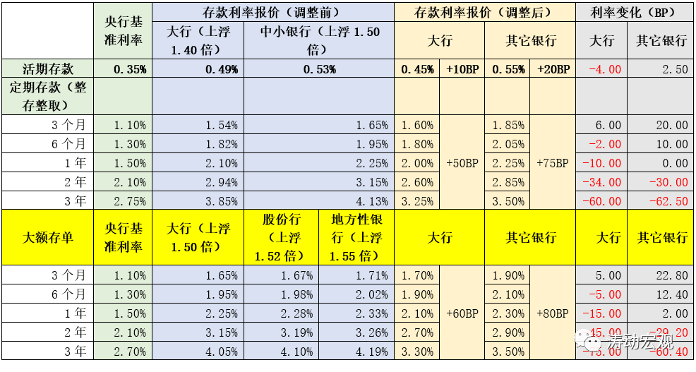 和LPR新報(bào)價(jià)機(jī)制不同的是,此次存款利率報(bào)價(jià)方式調(diào)整并未取消存款基準(zhǔn)利率,而是在存款基準(zhǔn)利率基礎(chǔ)上的調(diào)整,且針對(duì)國(guó)有大行和其它行采取了不同的調(diào)整幅度,這大概說(shuō)明三個(gè)問(wèn)題: