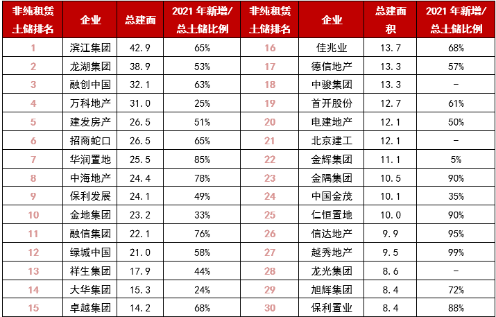1、2021年上半年非純租賃用地成交占68%,銷售30強較為積極