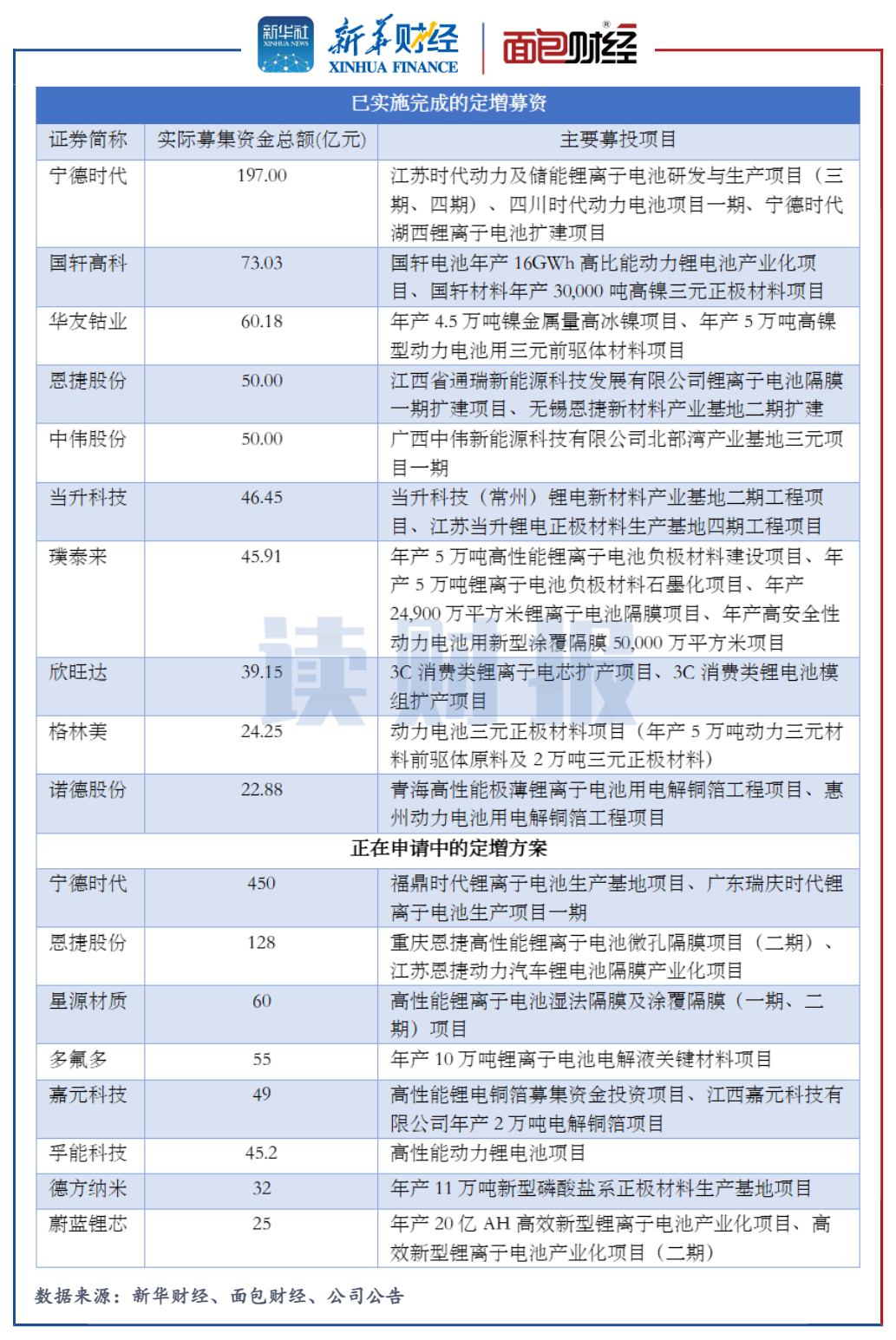 2020年以來,鋰電池板塊內公司掀起通過定增方式股權融資的“補血熱潮”,已經完成的和尚在申請階段的定增合計募資金額約達2000億元。
