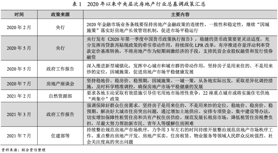 2020年以來其他房地產(chǎn)行業(yè)總基調(diào)政策和融資政策見下表。總體上看,房地產(chǎn)行業(yè)調(diào)控政策在“房住不炒”的硬約束下,調(diào)控政策趨嚴。