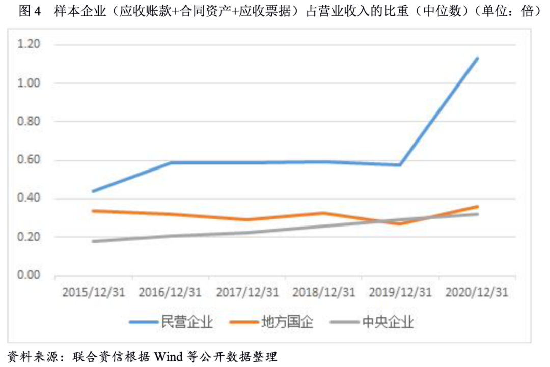 建筑施工企業(yè)下游占款壓力整體上升,民營建筑施工企業(yè)下游占款情況最為嚴重。