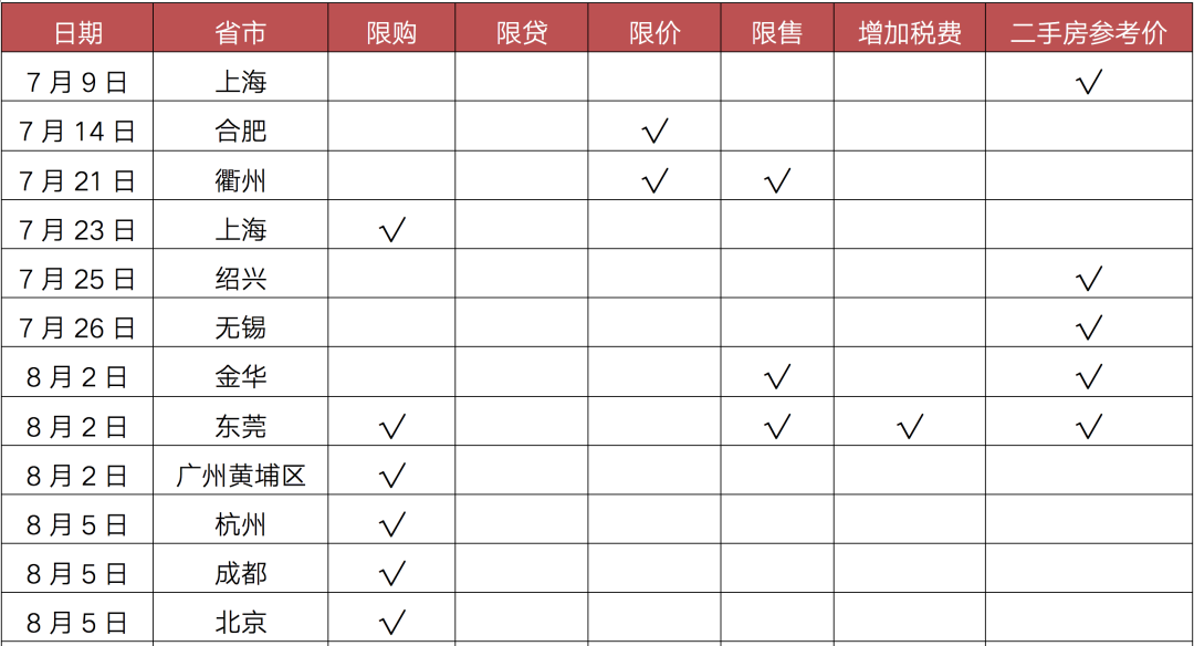 值得注意的是,上海、廣州、東莞等9城建立二手房參考價發(fā)布機制,引導(dǎo)二手房理性交易,維穩(wěn)房價預(yù)期。其中,上海政策力度最為嚴(yán)苛,將以市場真實價格為依據(jù),對每套房源進行核驗,沒有通過價格核驗的房源不得對外發(fā)布。