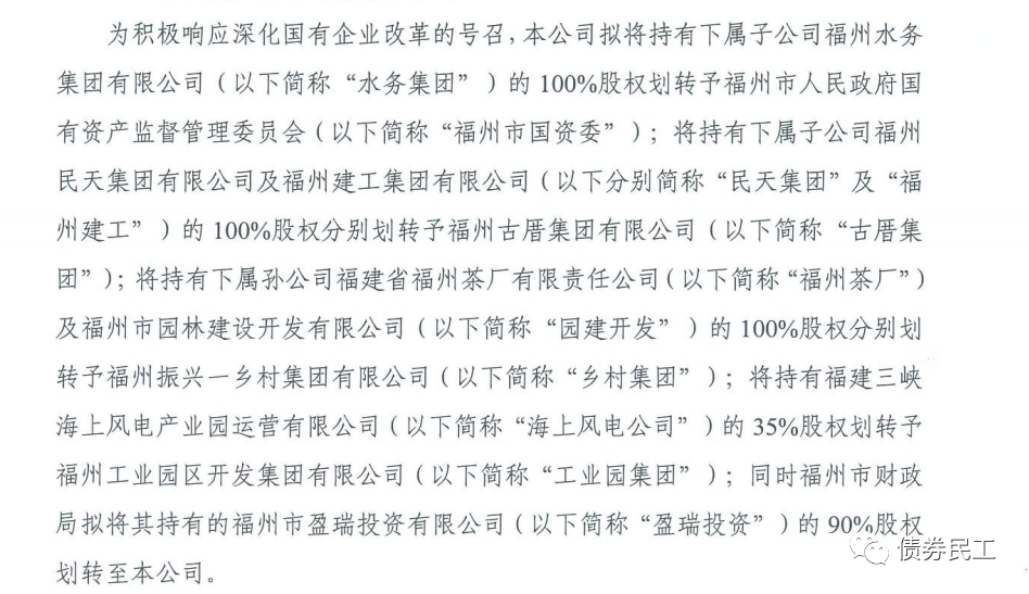 3、根據(jù)福州國(guó)有資本投資運(yùn)營(yíng)集團(tuán)有限公司(主體信用等級(jí)AA+)2022年2月9日的公告,擬將持有下屬4家下屬子公司股權(quán)劃出,同時(shí)福州市財(cái)政局?jǐn)M將其持有的福州市盈瑞投資有限公司的90%股權(quán)劃轉(zhuǎn)至公司。
